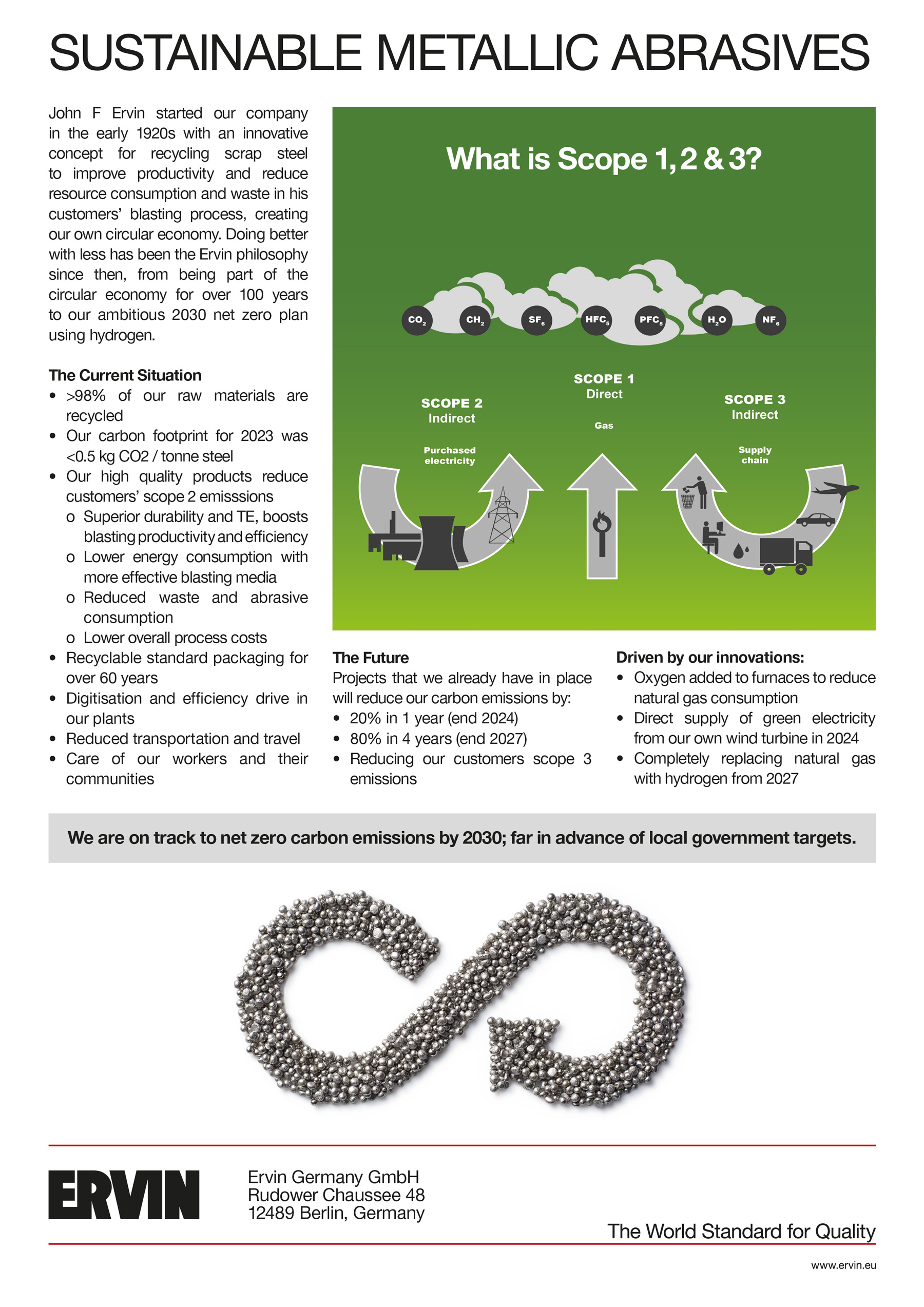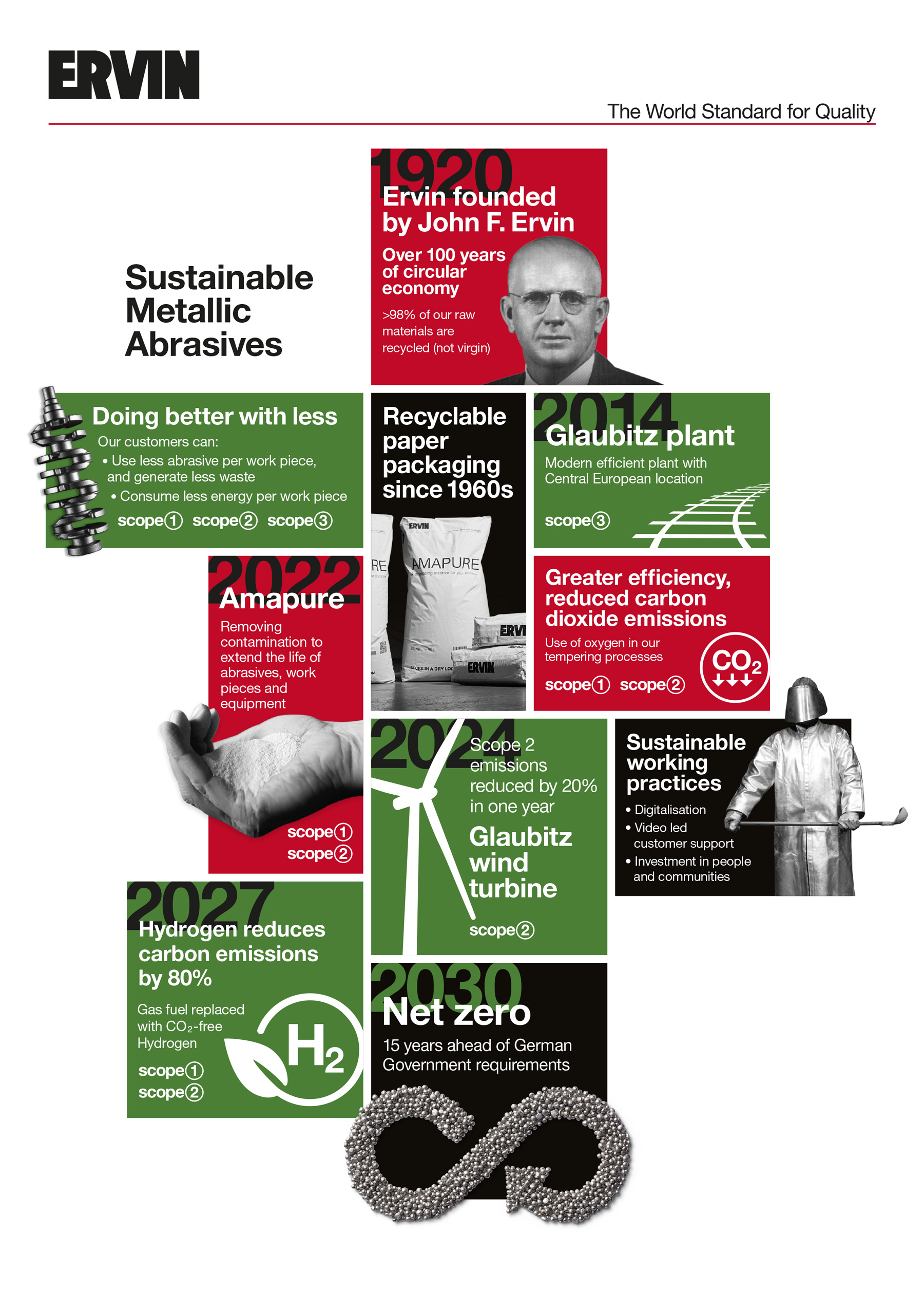 - ERVIN AMASTEEL specializējas skrotis ražošanā. Tās vēsture sākas 20. gadsimta 20. gadu sākumā, kad uzņēmuma dibinātājs Džons F. Ervins izgudroja tērauda abrazīvo leisanas procesu. Līdz šai dienai viņa pēcnācēji joprojām vada ERVIN AMASTEEL uzņēmumu, palīdzot saviem klientiem panākt visefektīvāko abrazīvo apstrādi ražošanā.